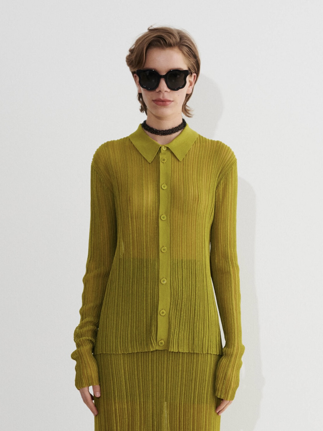 CHRISTIAN WIJNANTS KIMRIL 7670 KNITTED PLISSE SHIRT moss