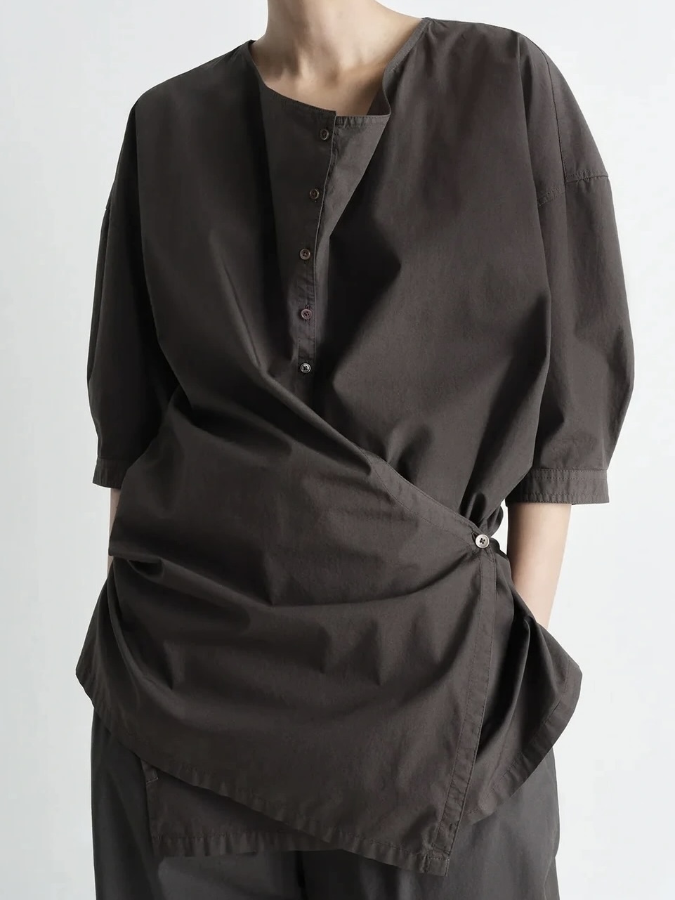 LEMAIRE SHORT SLEEVE TWISTED SHIRT dark brown