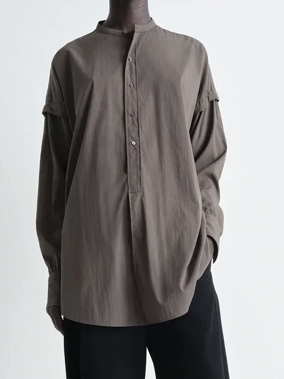 LEMAIRE LONG SHIRT WITH HALF PLACKET walnut