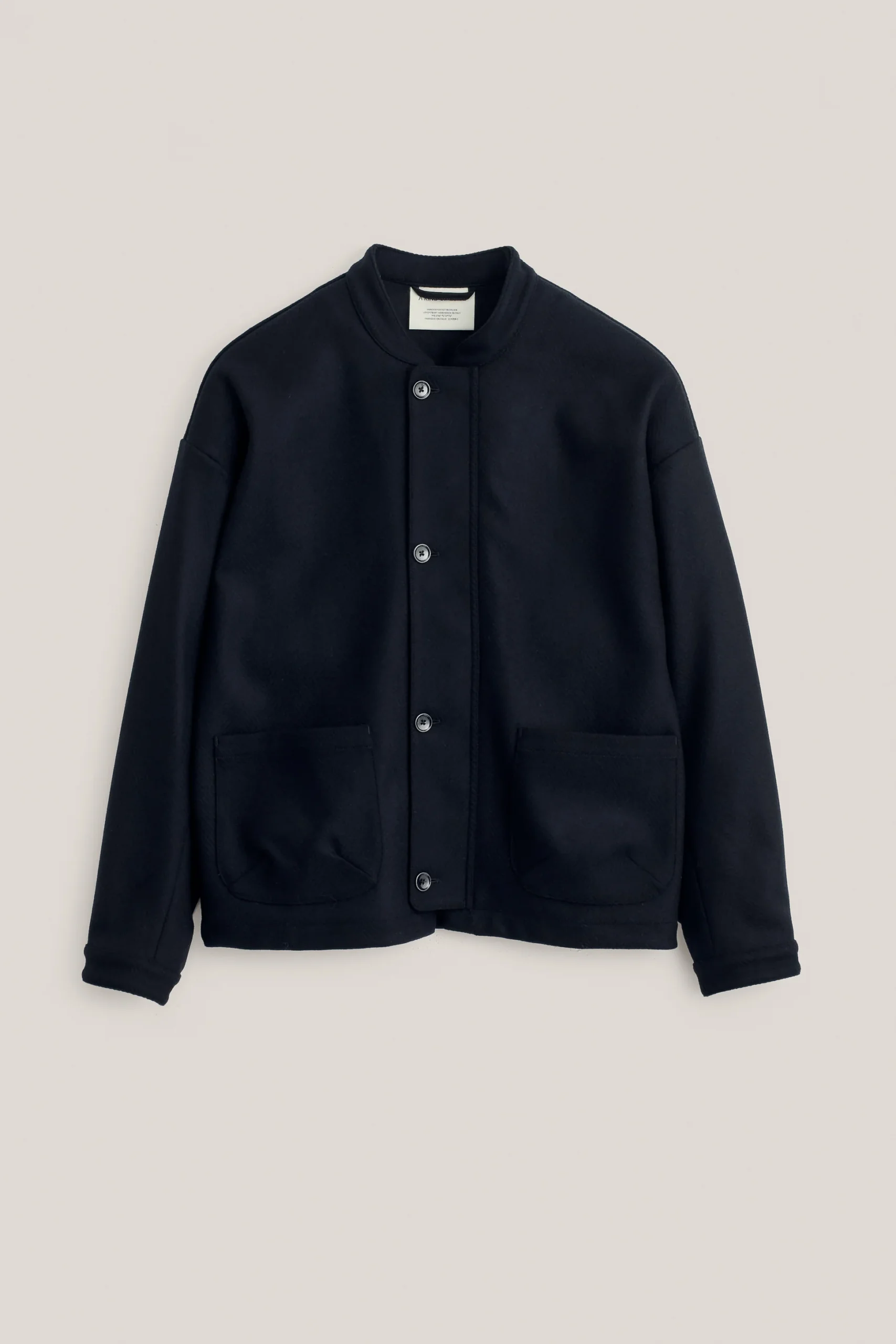A returning bestseller, the Jaspal Jacket features a boxy fit, overcut shoulders, a stand-up collar, and spacious front patch pockets. Finished with buttoned cuffs and a back strap detail.