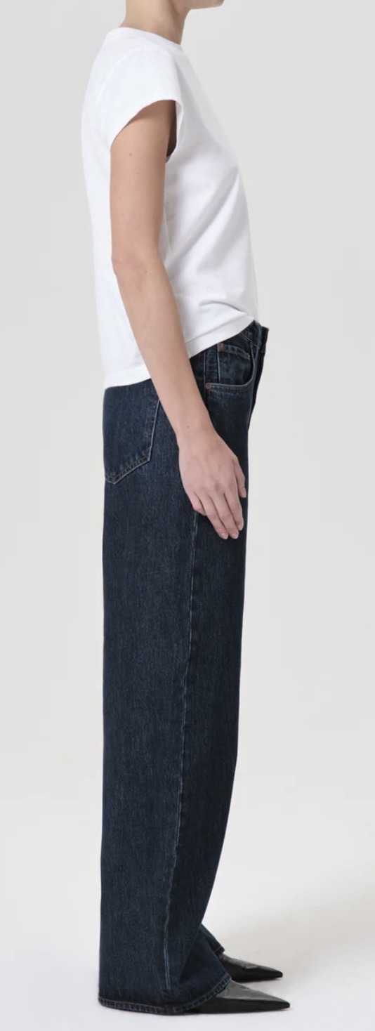 The Low Curve Jean is designed with a mid-rise waist, relaxed fit, and a subtle curved outseam that tapers for a refined yet effortless silhouette. Crafted from clean deep indigo, non-stretch denim in regenerative cotton, it offers a structured feel with a modern edge. Style with a crisp shirt and sleek boots for an understated yet elevated look.