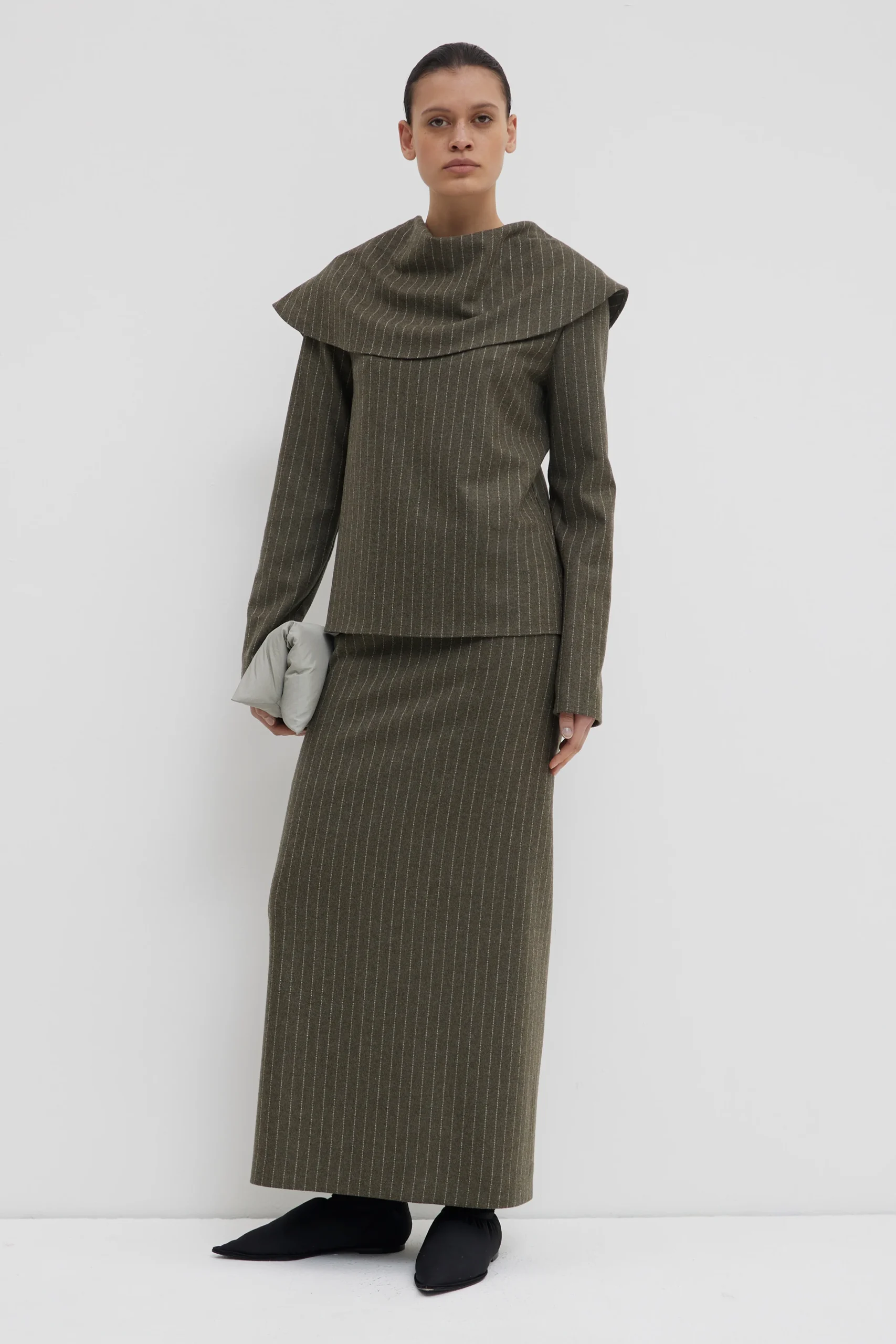 Cropped puffer jacket with sculptural volume and soft structure. Cut from nylon with a subtle sheen. Framed by a generous collar and wide sleeves that taper gently at the cuff. Finished with a concealed zip and elastic drawcord at the hem for a clean look.