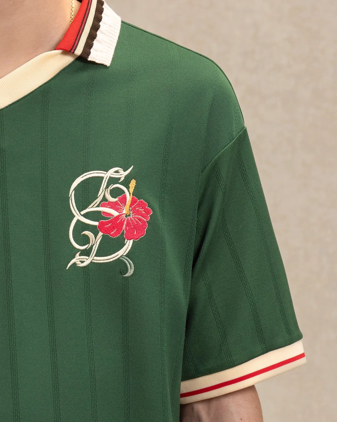 • mirrored ‚D‘ Hibiscus embroidery on the chest