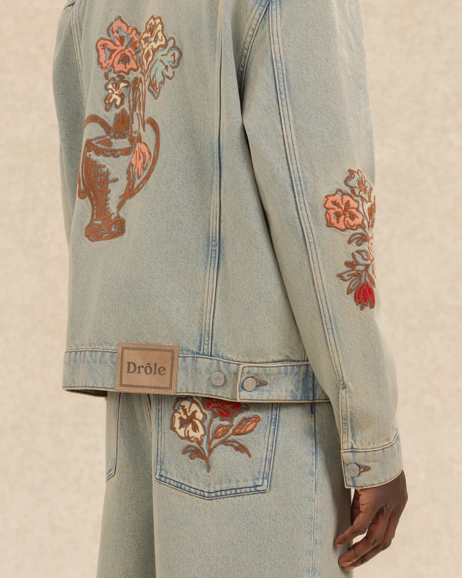 DRÔLE DE MONSIEUR VESTE DENIM DUSTY BRODÉE FLEURS blue