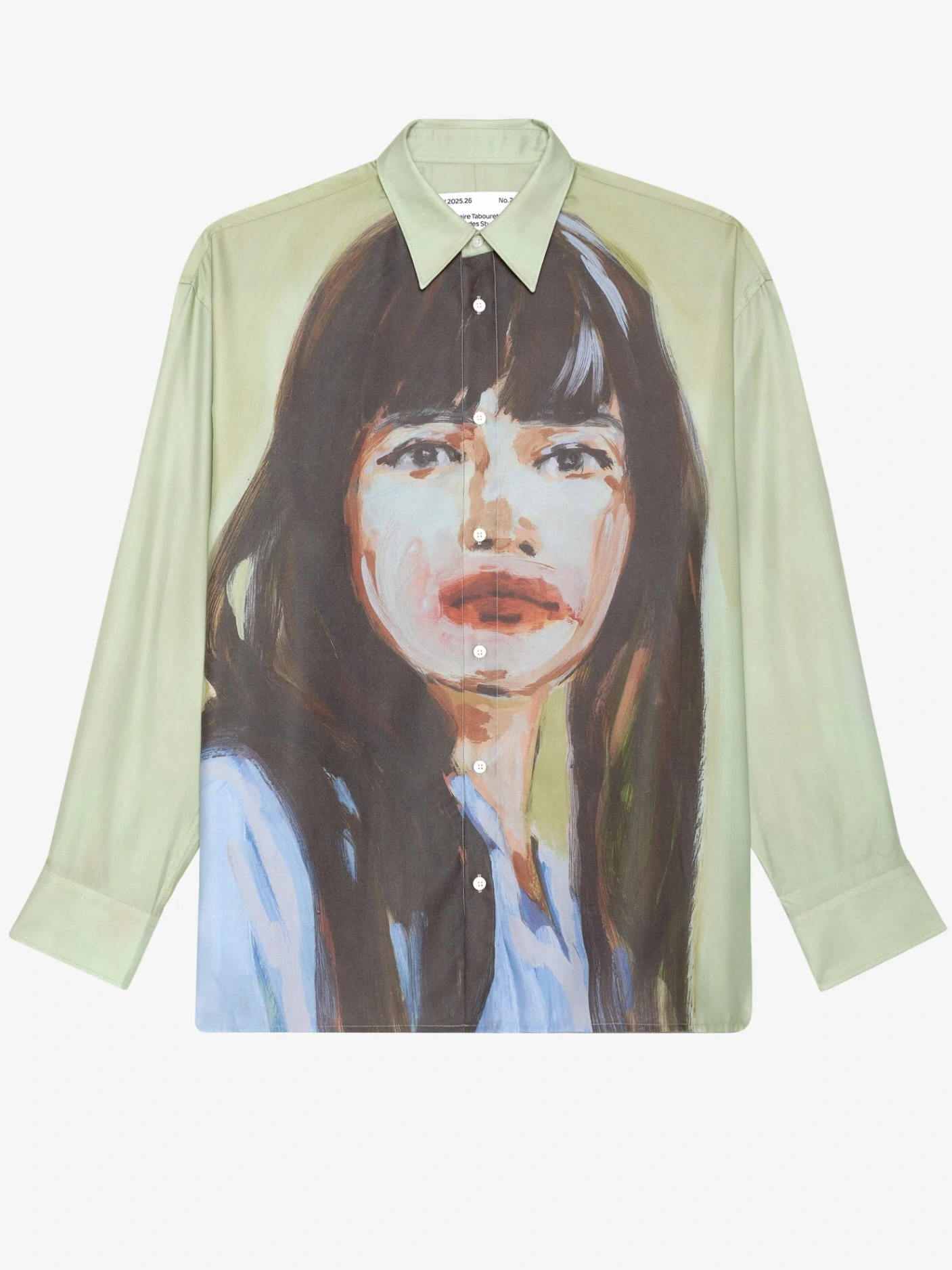 Resulting from the collaboration between the renowned French painter Claire Tabouret and Études Studio, it is a loose-fitting, long-sleeved button-down shirt. A true work of art, it features the artist’s famous self-portrait on the front and back.