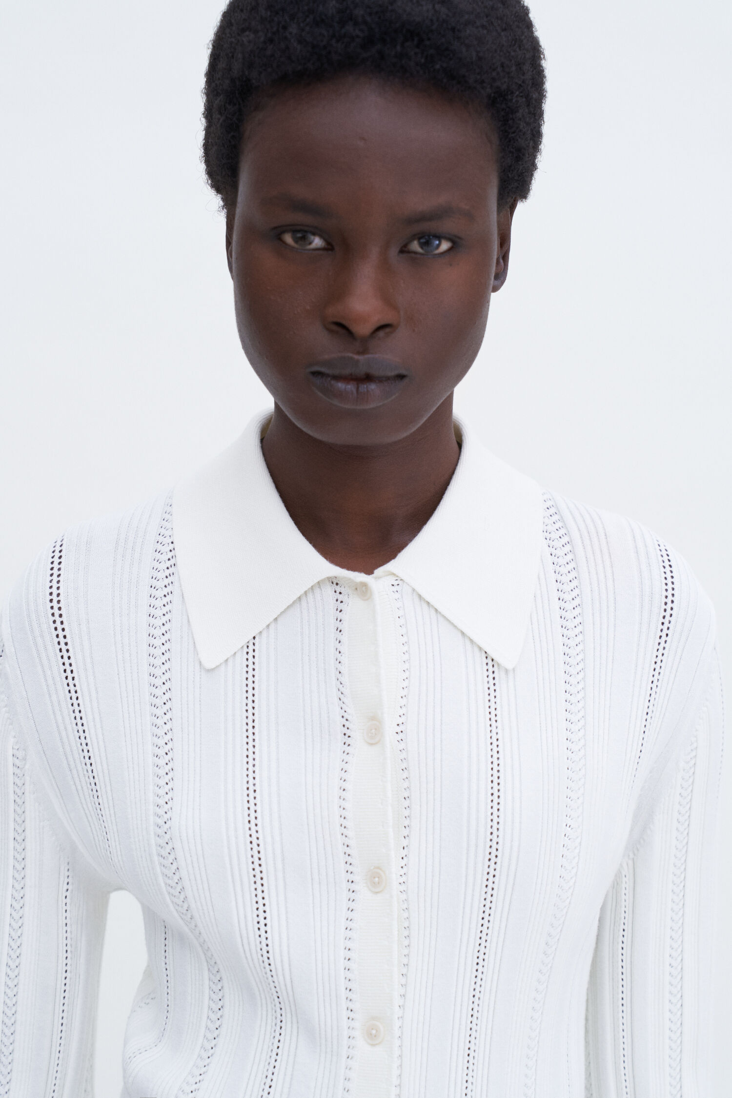 Lightweight viscose cardigan in a braided pointelle knit pattern with a regular fit. Style it under a blazer or over a tank, depending on the weather.