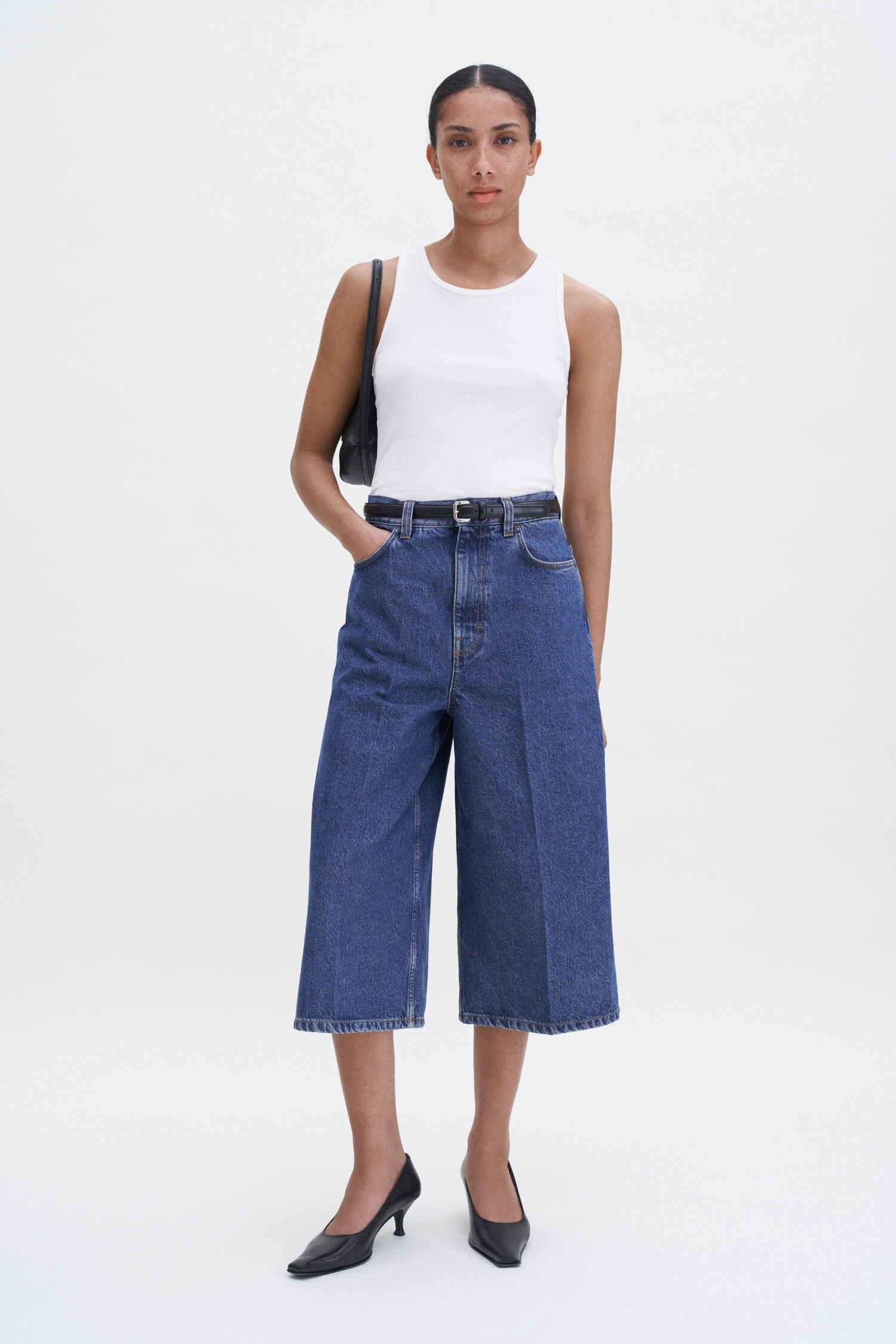 The Jean Work Shorts have a regular wide-leg fit with a high waist and below-knee length. Workwear-inspired jean shorts in a non-stretch denim blend of organic and recycled cotton with TENCEL™. Designed with a wide-leg fit, high waist and below knee length. Wear them with a white tee for a timeless look.