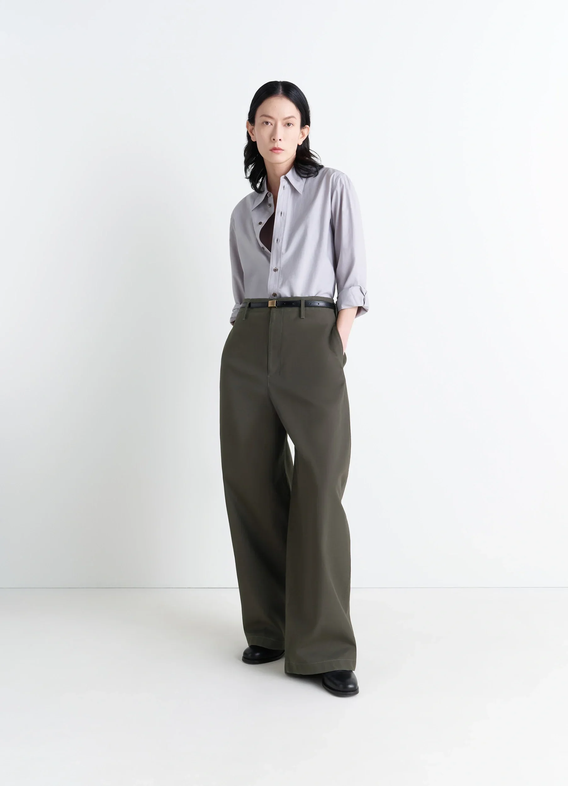 Inspired by Lemaire’s taste for the link between comfort and elegance, these oversized chino pants feature multiple pockets. Made from thick cotton twill, a Japanese fabric that has undergone a rinse treatment to add softness to the garment. The piece will develop a patina over time.