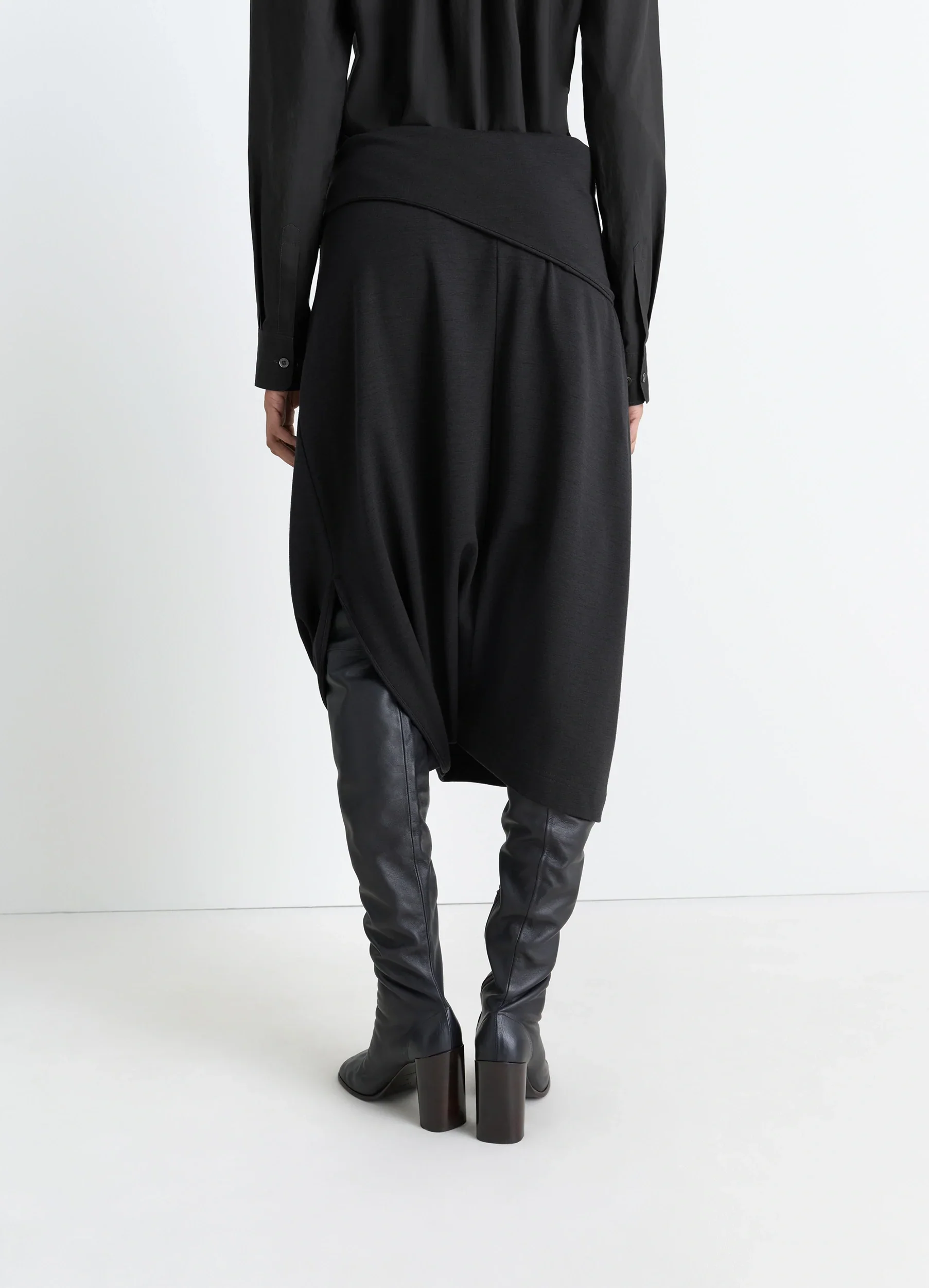 • Twisted hem skirt in wool viscose interlock blend