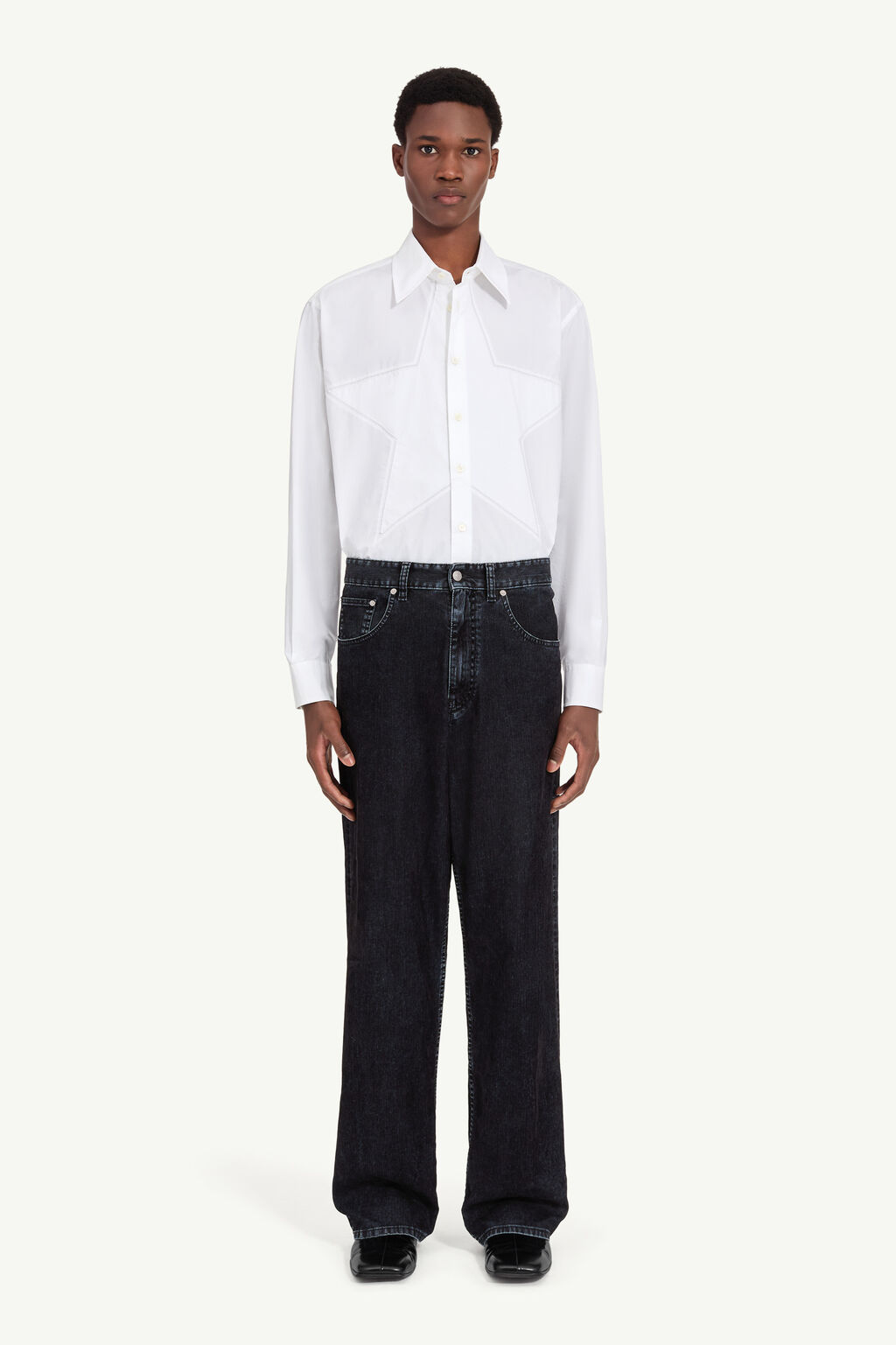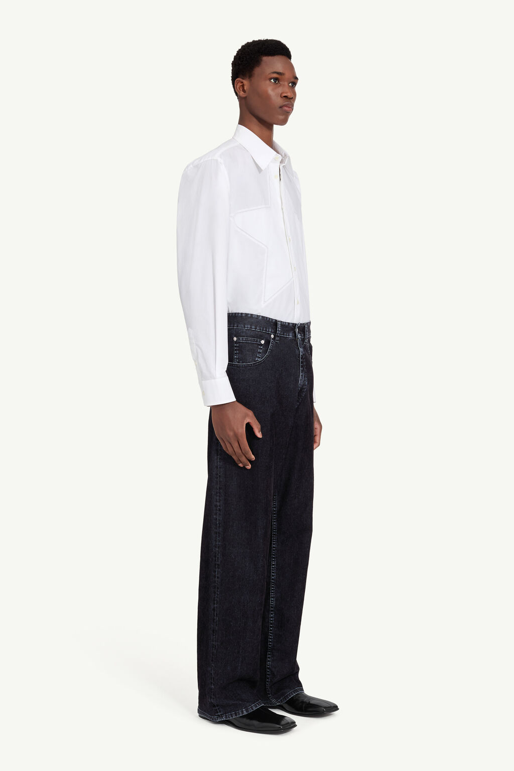 Featuring a specific wash for a colour-matched depth effect, these jeans pay tribute to the unconventional ethos of the MM6 line with a comfortable silhouette featuring a wide leg cut and signature accents. A leather patch with a numeric signature and the MM6 line’s signature white stitching accentuate the rebellious design on the back.