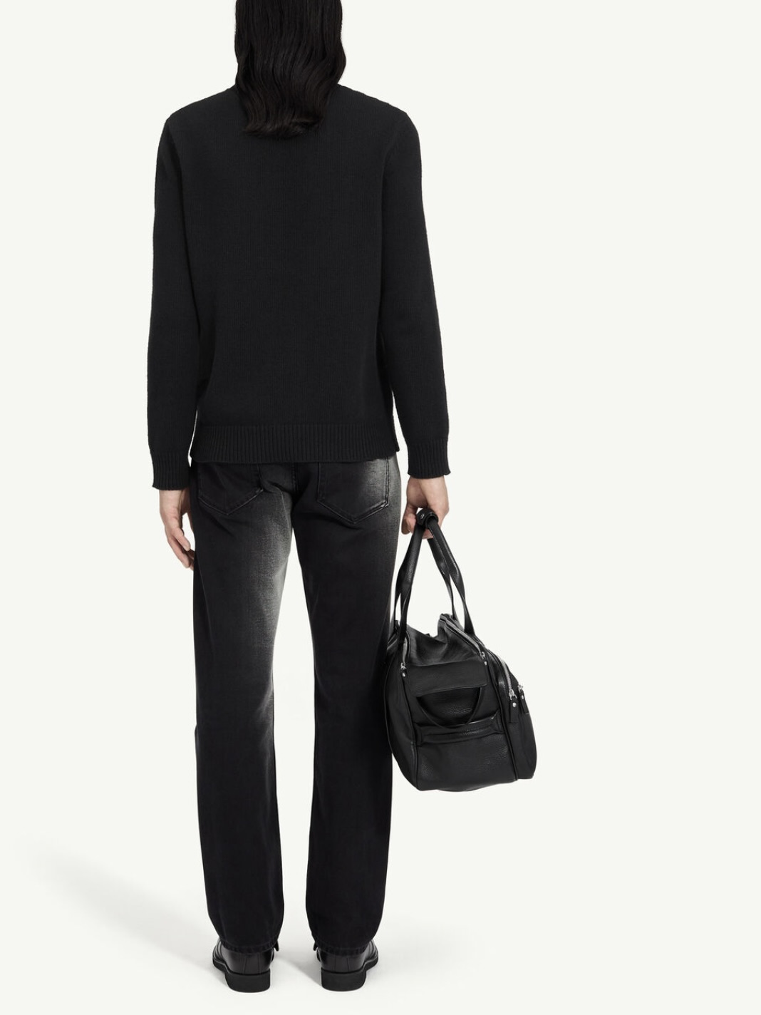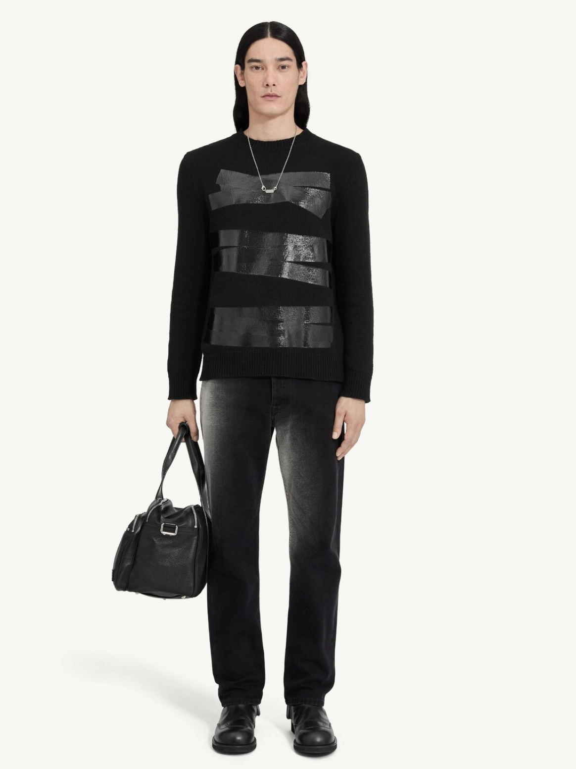 • Sweater with round neckline and adhesive tape-style panels on the front