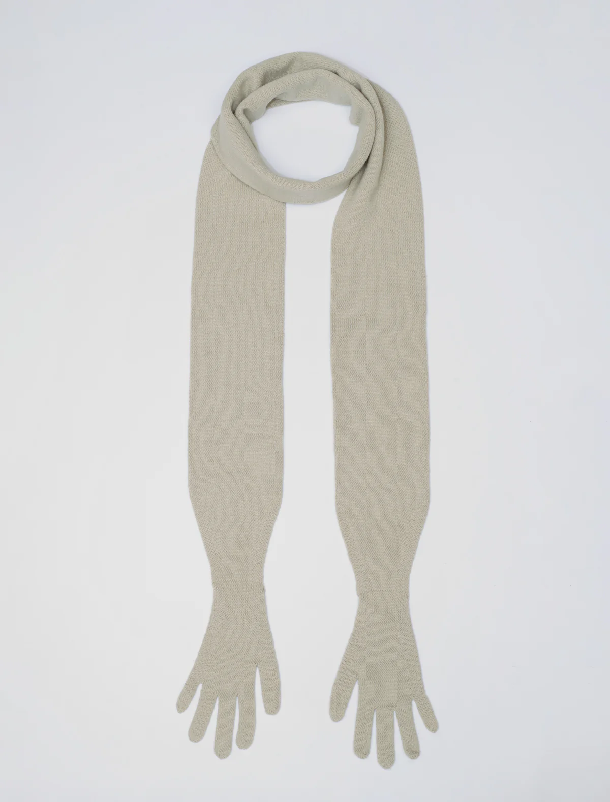It can be wrapped around the neck, and hands can be slipped into the gloves.