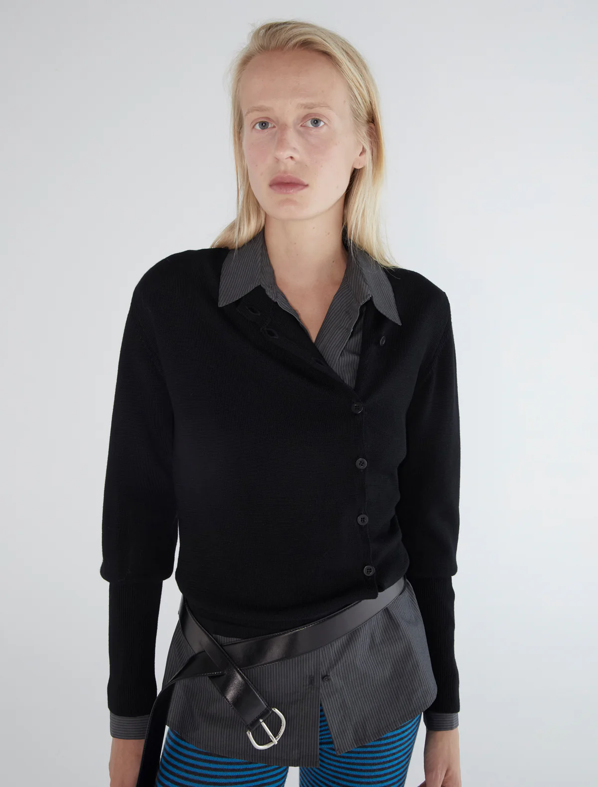 Wool jumper with a side opening. Designed with voluminous sleeves and high ribbed cuffs. Made of a warm, medium-weight wool knit.