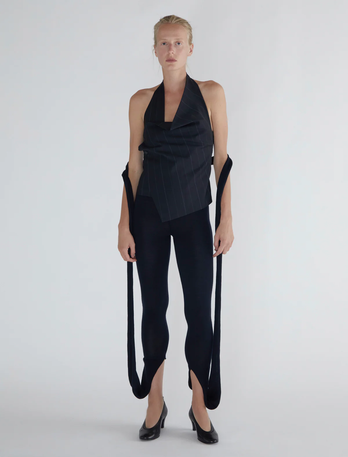 The front features two layers, the top layer fastens to the base with small buttons. This upper panel can be worn neatly in place, draped, or left to fall.