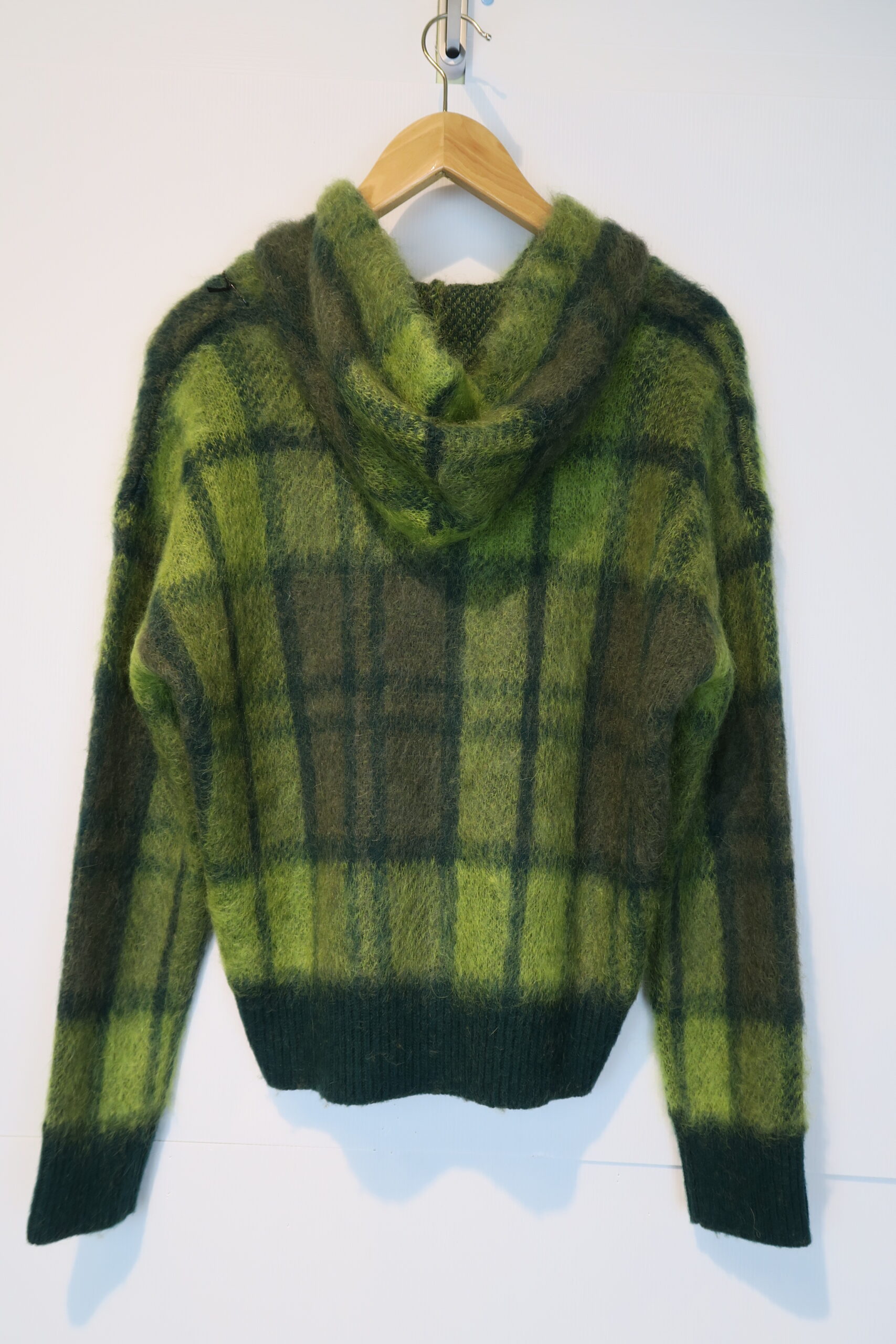 Short knitted jumper by Roberto Collina in a brushed merino-mohair blend, hood with drawstring, dropped shoulders, long sleeves, ribbed cuffs, straight hem.