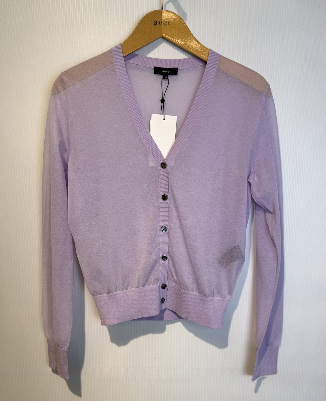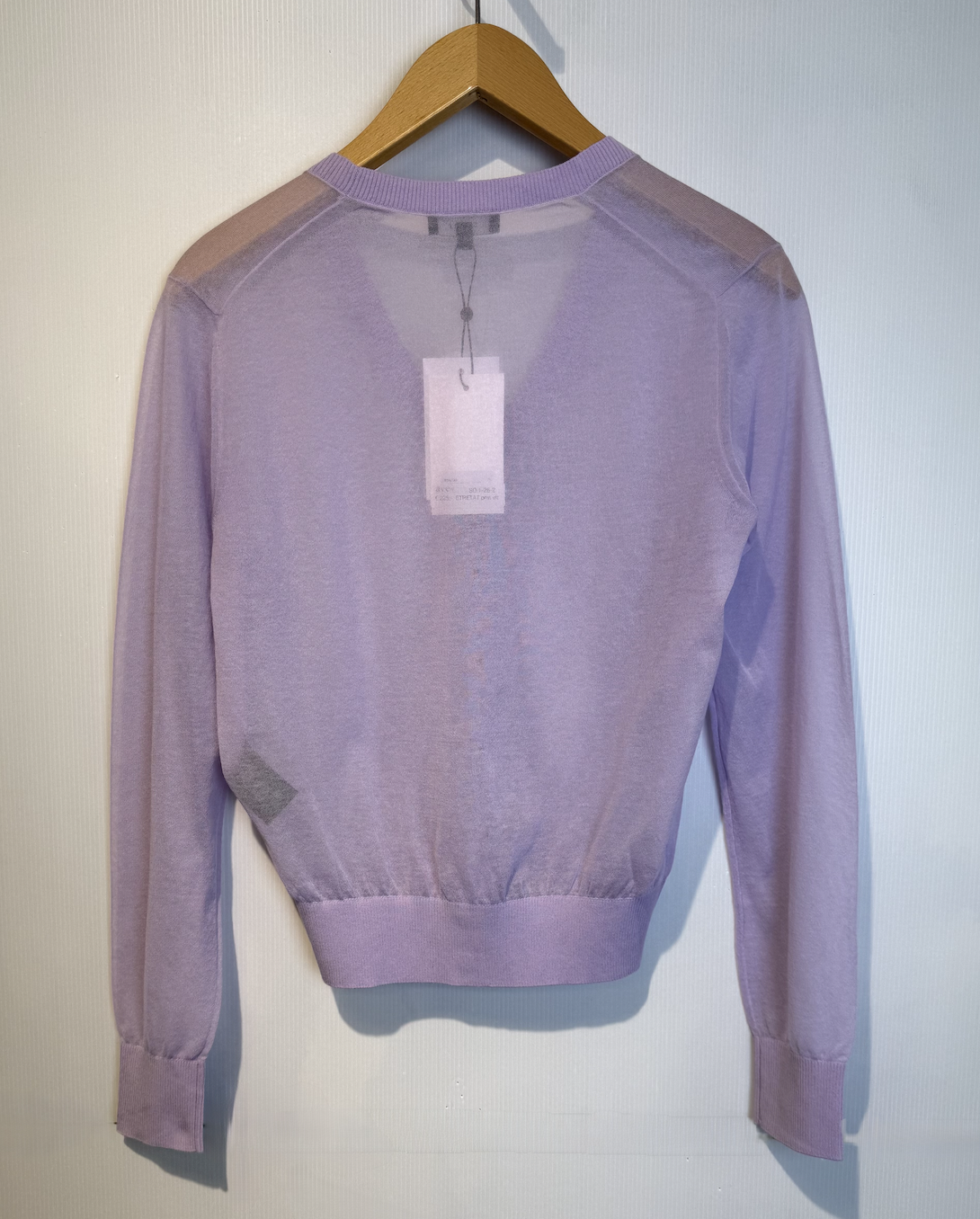 ETRETAT is a cardigan knitted in ultra-fine yarn. It can be worn directly on the skin or layered for transparency effects. Versatile, it can be dressed up or casual.