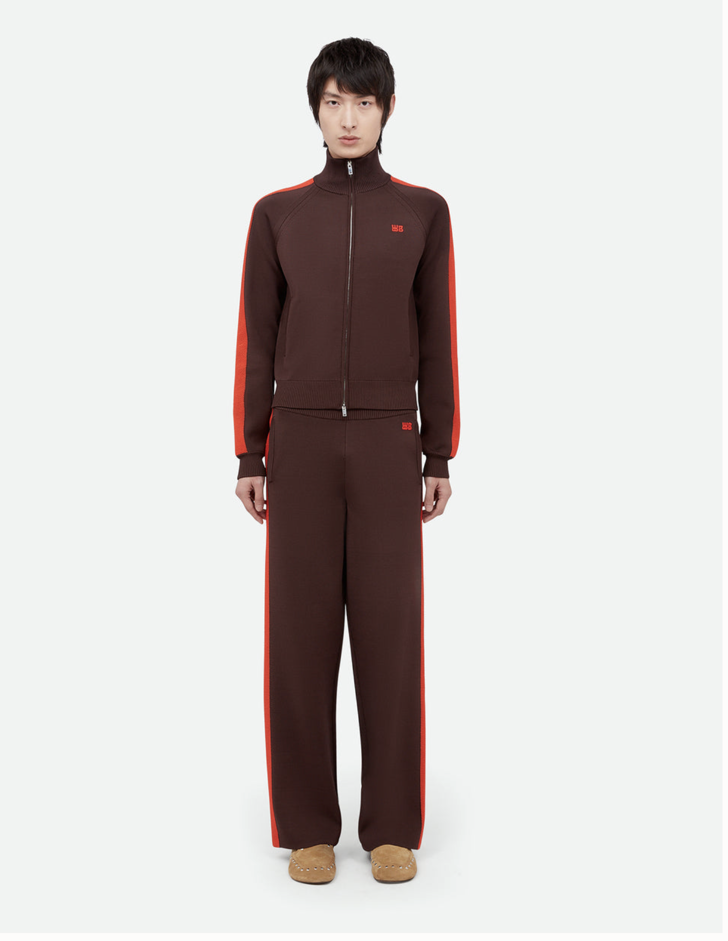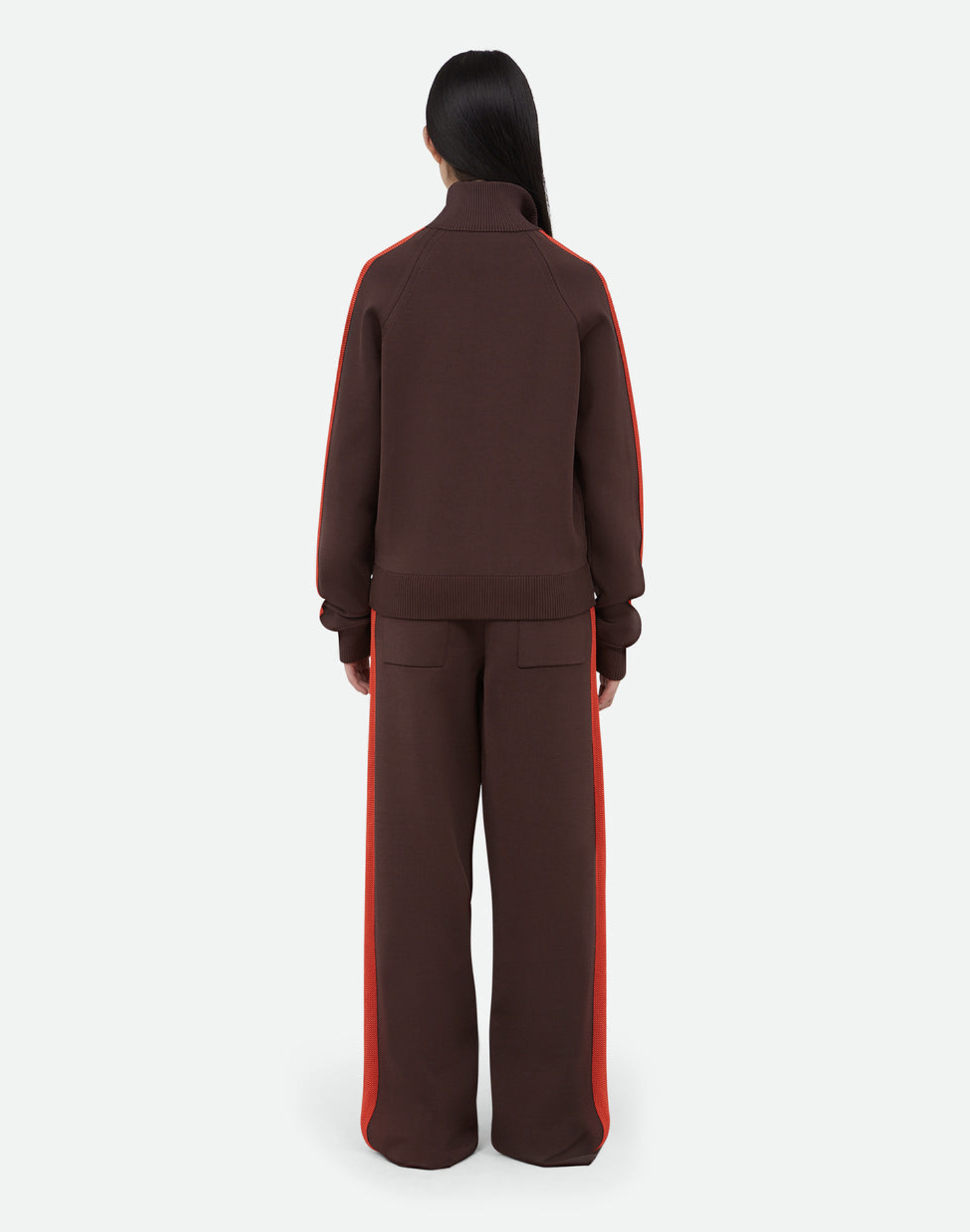 Seasonal knit viscose track top with a signature crochet trim and tonal embroidered logo.