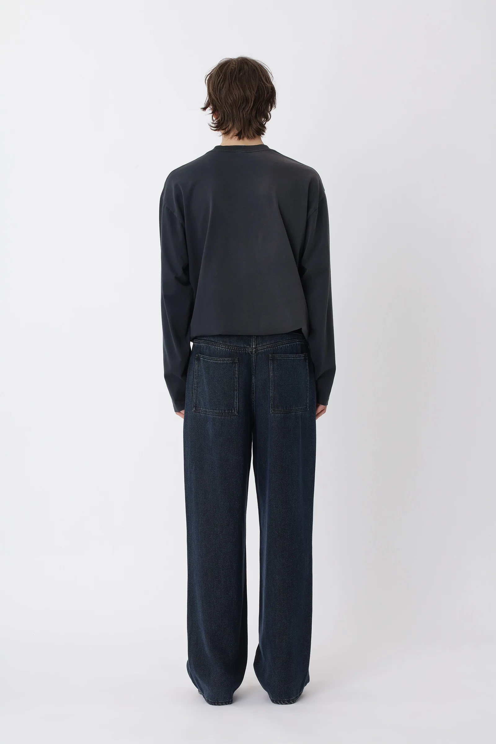 Created in our drapy denim that gives you the perfect comfort pants, with a drark blue wash.
