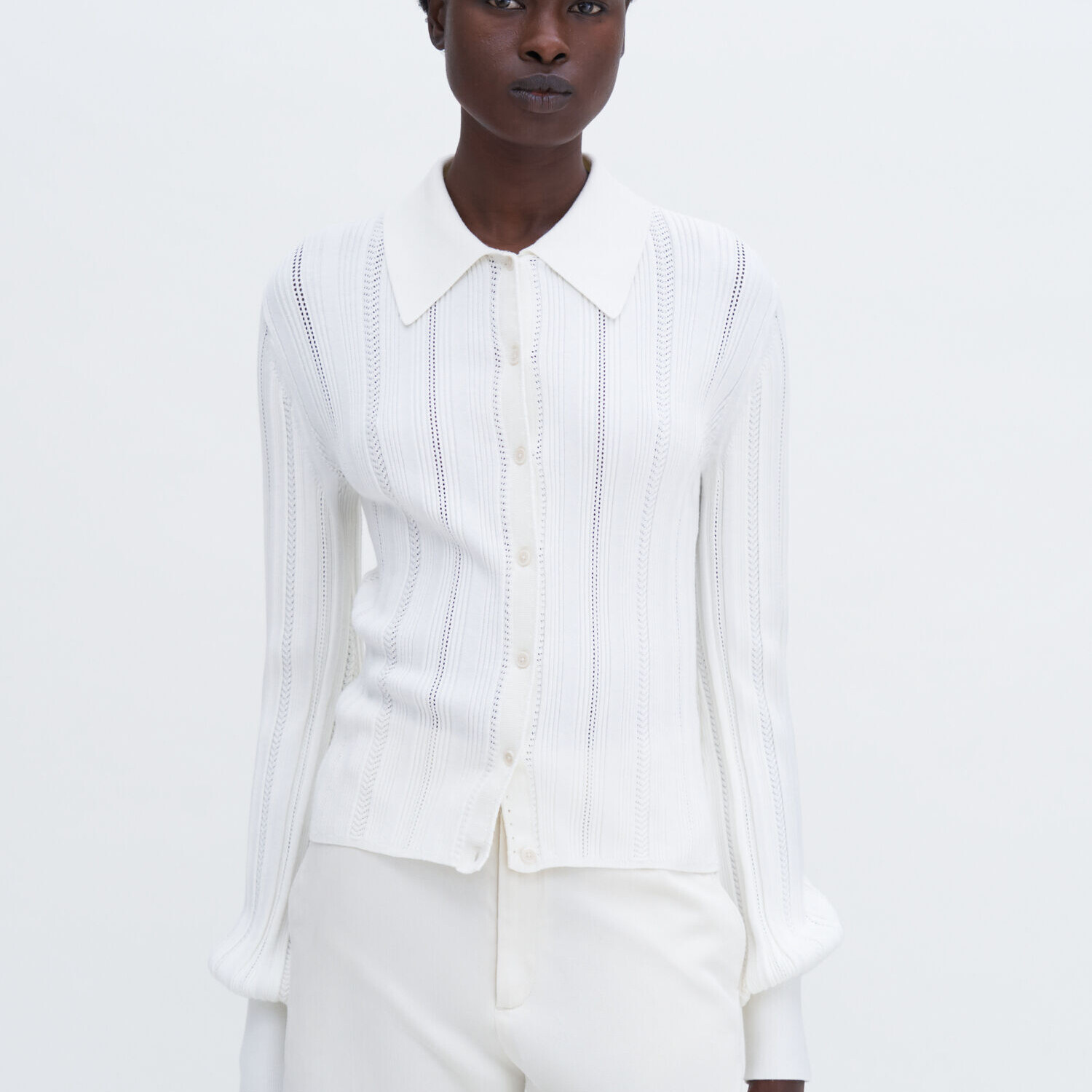 FILIPPA K BRAID KNIT CARDIGAN pearl white