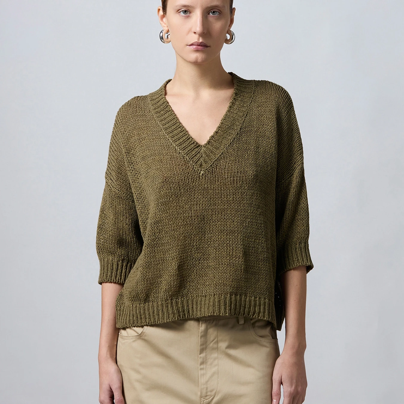 ROBERTO COLLINA B41022 BOXY V-NECK SWEATER military