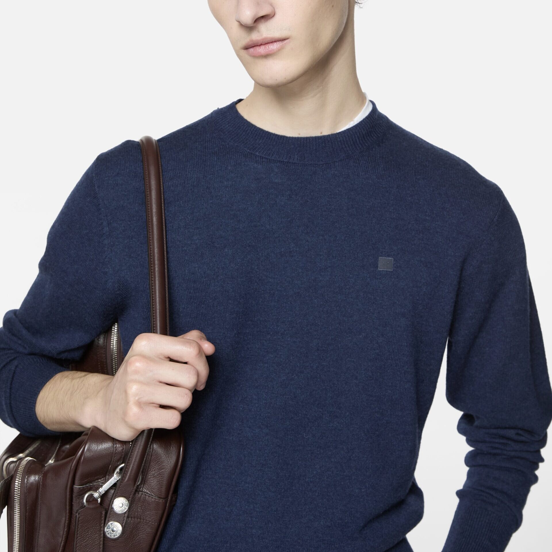 ACNE STUDIOS FACE CREW NECK JUMPER KNIT000108 navy melange